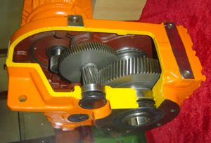 4.強(qiáng)度高、體積?。合潴w采用高強(qiáng)度鑄鐵。齒輪及齒輪軸采用氣體滲碳淬火精磨工藝,因而單位體積承載能力高。